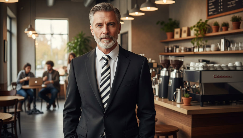 Elevate your professional wardrobe with this expertly crafted Black on White striped tie from Andromeda. The classic monochromatic palette features bold, precisely aligned stripes that exude confidence and authority in any corporate environment. Whether navigating critical boardroom presentations or formal business occasions, this tie seamlessly transitions from day meetings to evening engagements. The timeless design transcends seasonal trends, making it an indispensable investment piece that pairs effortlessly with navy, charcoal, or grey suiting. Crafted with attention to detail, the structured weave ensures a polished knot and maintains its shape throughout the day. Perfect for professionals who understand that refined style speaks louder than fleeting fashion statements.
